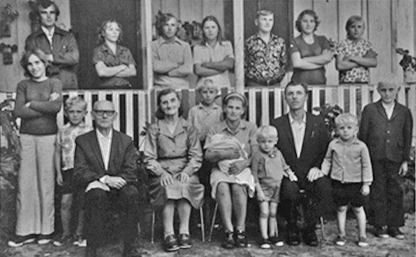 Foto da família por ocasião das Bodas de prata. Ao fundo, da esquerda para a direita: Antônio, Neli, João, Carmelita, Vicente, Guiomar e Fernando. Na fila da frente: Célia, Carlos Alberto, Antônio, Elisabeth, Paulo, Pierina com Marcos no colo, Edmundo, Achiles, Mário e Luís.